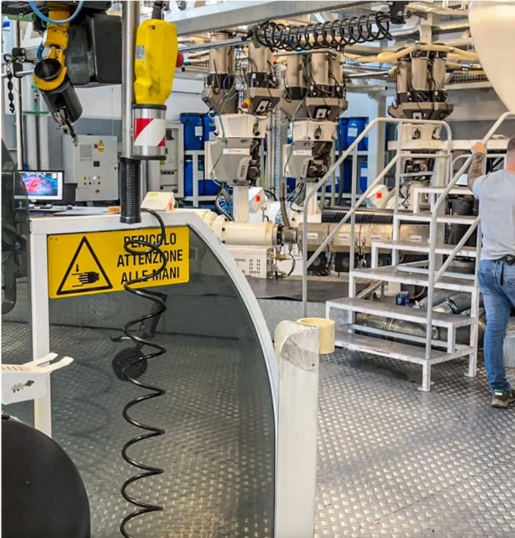 Computer controlled production ensures consistency and traceability.The plastic blend is pushed through a machine called an extruder.