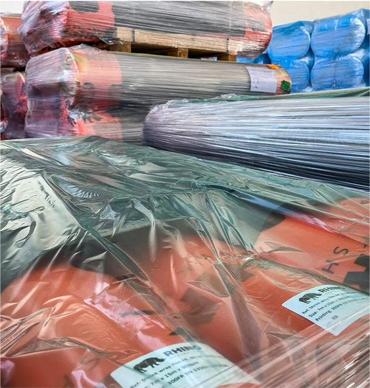 Pallets are stored in our warehouse. We typically carry at least 100 tons of shrink wrap film available for immediate dispatch.
