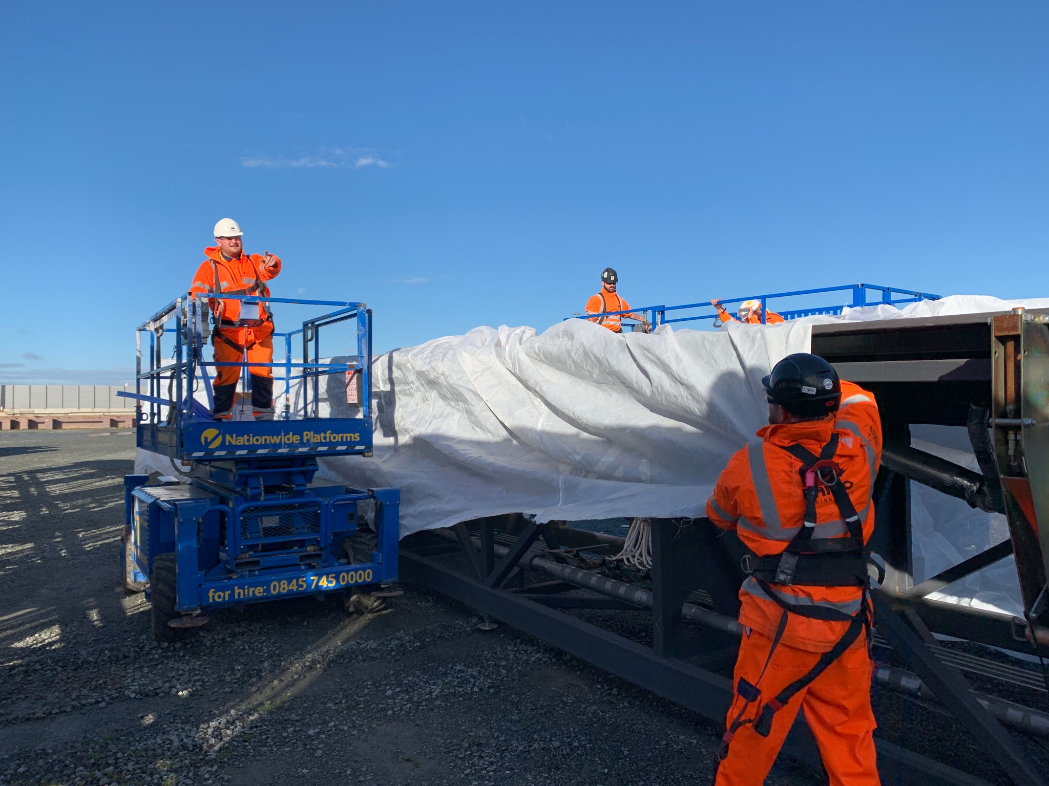 - Scaffold Fixing – Shrink wrap is clipped and welded to the scaffold for a secure fit.